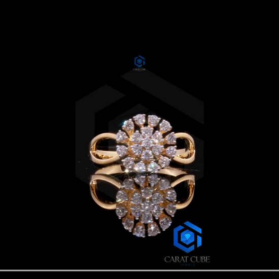 Introducing the Golden Embrace Flower Cluster Ring. This design features a perfectly proportioned diamond cluster centerpiece that maximizes light and brilliance, set atop a beautifully flowing, twisted yellow gold band. It's the ideal piece for adding a touch of sophisticated glamour to any outfit.