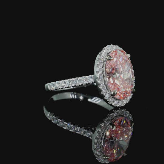 Twin halos of elegance: radiant pink diamond surrounded by shimmering iced diamonds, capturing timeless luxury.