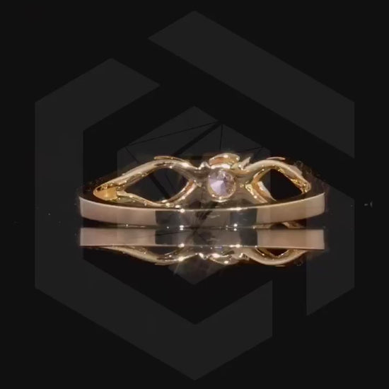 A true piece of wearable art. The central diamond acts as the radiant anchor for the breathtaking, open-work gold design that sweeps elegantly along the band.