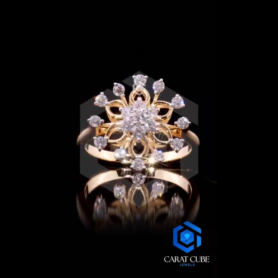 Experience the fire and brilliance of our Diamond Petals Openwork Ring. The intricate layering and radiating clusters give this piece a light, delicate feel despite its impressive size. Set in warm gold, this ring is a true testament to masterful craftsmanship. A wearable piece of art for your collection.