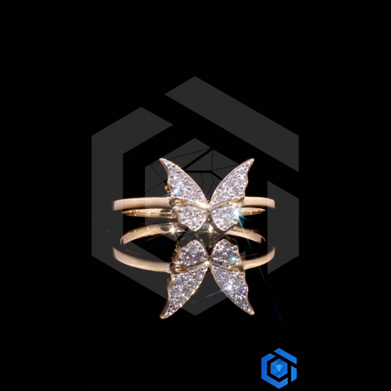 Capture the magic of nature with the Fluttering Diamond Butterfly Ring. This exquisite piece features a shimmering butterfly, expertly set with brilliant pave diamonds on a sleek gold band. It's a design that embodies freedom, beauty, and renewal. A perfect gift for someone special or a meaningful treat for yourself.