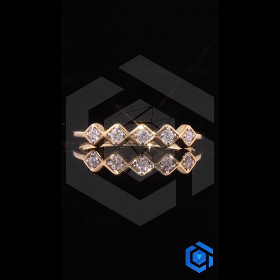 Meet the Geometric Diamond Band, a modern twist on the classic eternity style. Each diamond is securely set in a distinctive square bezel, creating a seamless line of sparkle. This ring is beautiful worn alone for a sophisticated, understated look or paired with your engagement ring to create a custom wedding stack. The ultimate everyday luxury.