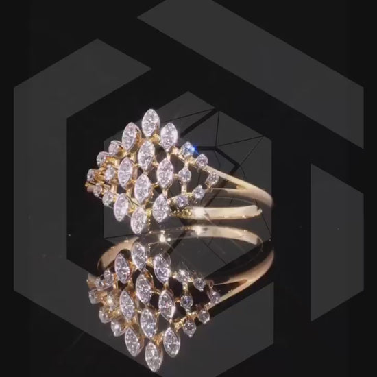 Elevate your everyday with the royal sparkle ring. Crafted with a stunning array of marquise and round-cut diamonds, this cluster piece radiates brilliance and luxury. Its unique, sweeping design is reminiscent of a delicate tiara, making it the perfect piece to celebrate your own queen energy.
